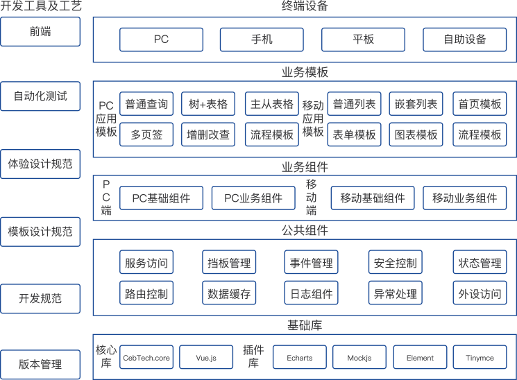 1.支持丰富的基础组件、业务组件,方便前端开发人员开发各种前端应用程序。