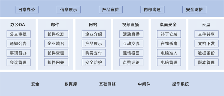 云阳平台,为中国人a片客户提供办公OA、邮件、移动端应用(H5开发)、网站、视频会议等一体化解决方案,满足中国人a片用户的日常办公、信息宣传、内部沟通等全方位办公需求。