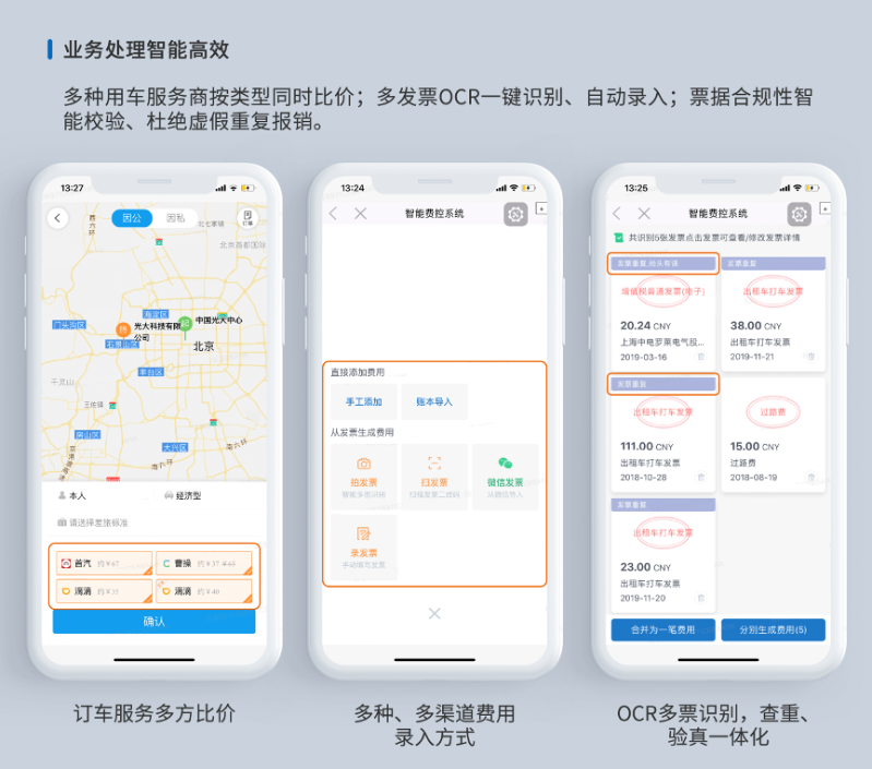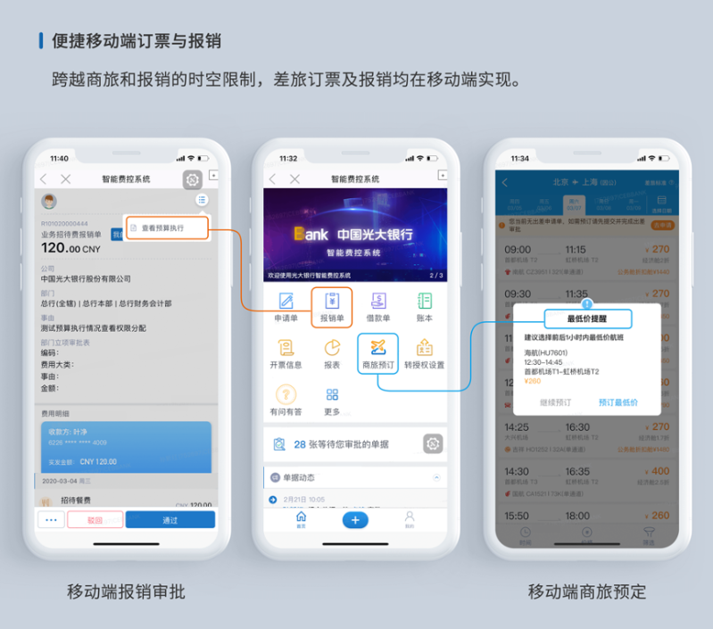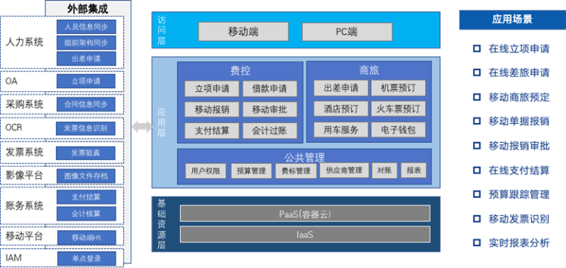 一站式移动费控及差旅解决方案。通过基于机器学习的OCR多图一键识别、票据影像电子化、全流程多系统集成、微信等社交工具嵌入等多种技术手段,全面革新员工的差旅和报销方式,重构审批流程、提升用户体验,实现从费用申请、消费、报销、审批到支付结算的全线上化;同时助力中国人a片多维度费用合规管控和降本增效,为中国人a片提供高效便捷、开放智能的费控差旅产品及服务。